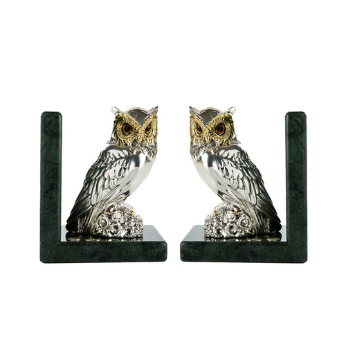 意大利原产GOLD LINE高品质镀金镀银猫头鹰书架摆件