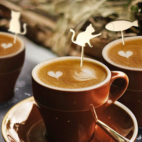 日本原产elfin高桑金属不锈钢镀金咖啡勺3件套猫鱼一家欢